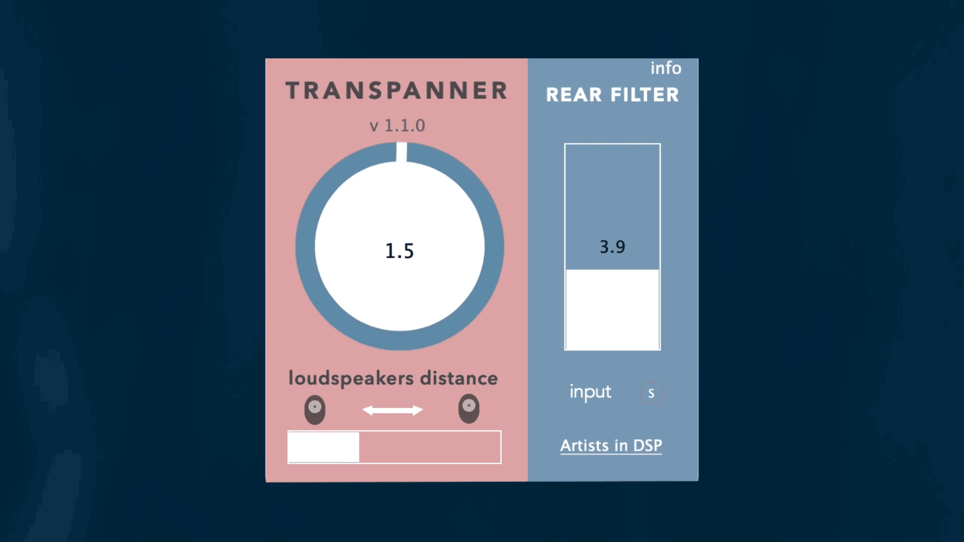 - Loudspeakers Distance: Optimize your sound based on your unique loudspeaker setup. Fine-tune the crosstalk cancellation delay for the best spatial audio experience. Note: Transpanner also works effectively with headphone playback.